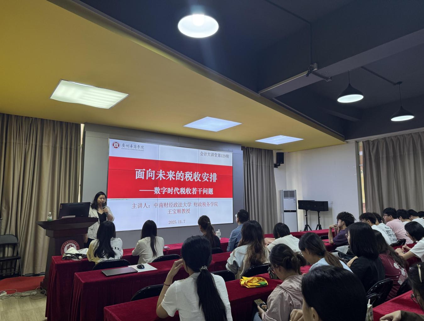 2025年11月7日,中南财经政法大学财政税务学院王宝顺教授应邀做客华商会计大讲堂,以《面向未来的税收安排——数字时代税收若干问题》为题,为会计学院师生带来一场深度解析数字经济与税收变革的学术盛宴。本次讲座由会议由会计学院院长助理陈平副教授主持。