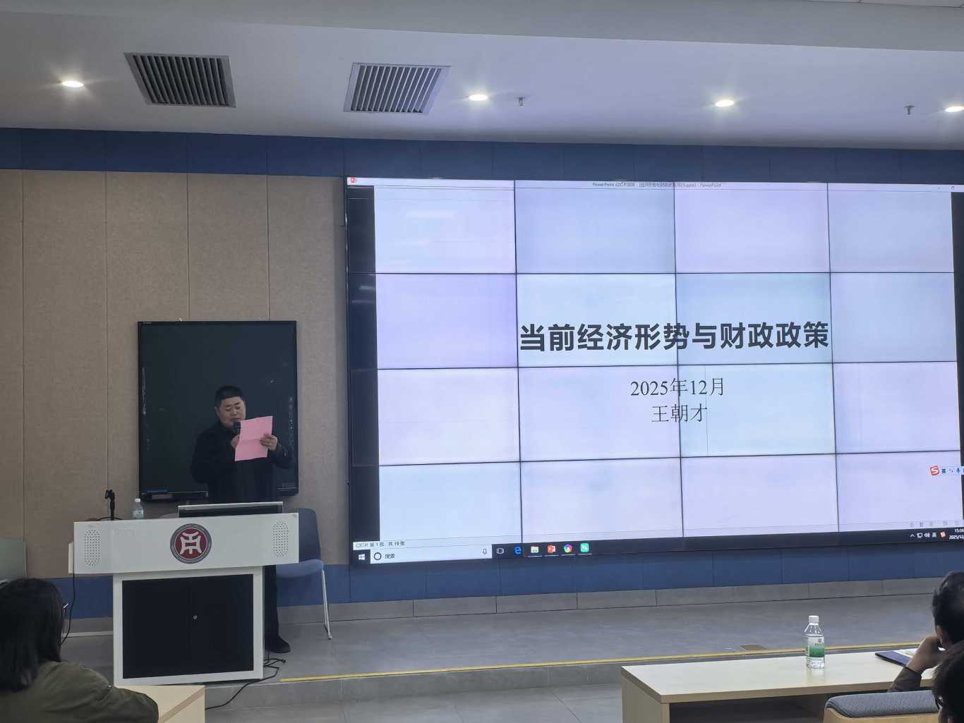 王朝才教授立足国家经济发展大局,围绕“经济形势总体判断”“面临的结构性挑战”“发展战略与政策方向”等方面展开系统阐述。他指出,中国经济“基本盘”稳固,2024年GDP预计超134万亿元,粮食产量保持稳定,仍是世界经济增长的重要动力。同时,他也深入剖析当前经济面临的“爬坡过坎”压力、“卡脖子”技术制约、区域发展不平衡、房地产等行业调整等结构性挑战,引导师生辩证看待当前经济形势。