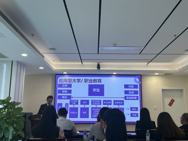在分享环节,华商科教集团高级财务总监、数智会计与商务服务产业学院企业方副院长黄晓刚以“产教融合新实践:ESG合规与可持续发展同行”为主题,向与会嘉宾全面展示了华商的探索与成果。
