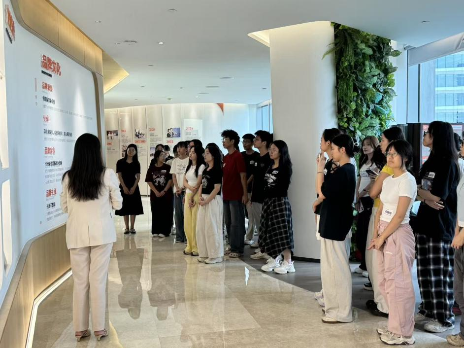 在企业参访环节,同学们依次参观了品牌馆和总部办公区域,深入了解企业的发展历程与文化底蕴,真切感受现代化企业的工作氛围。